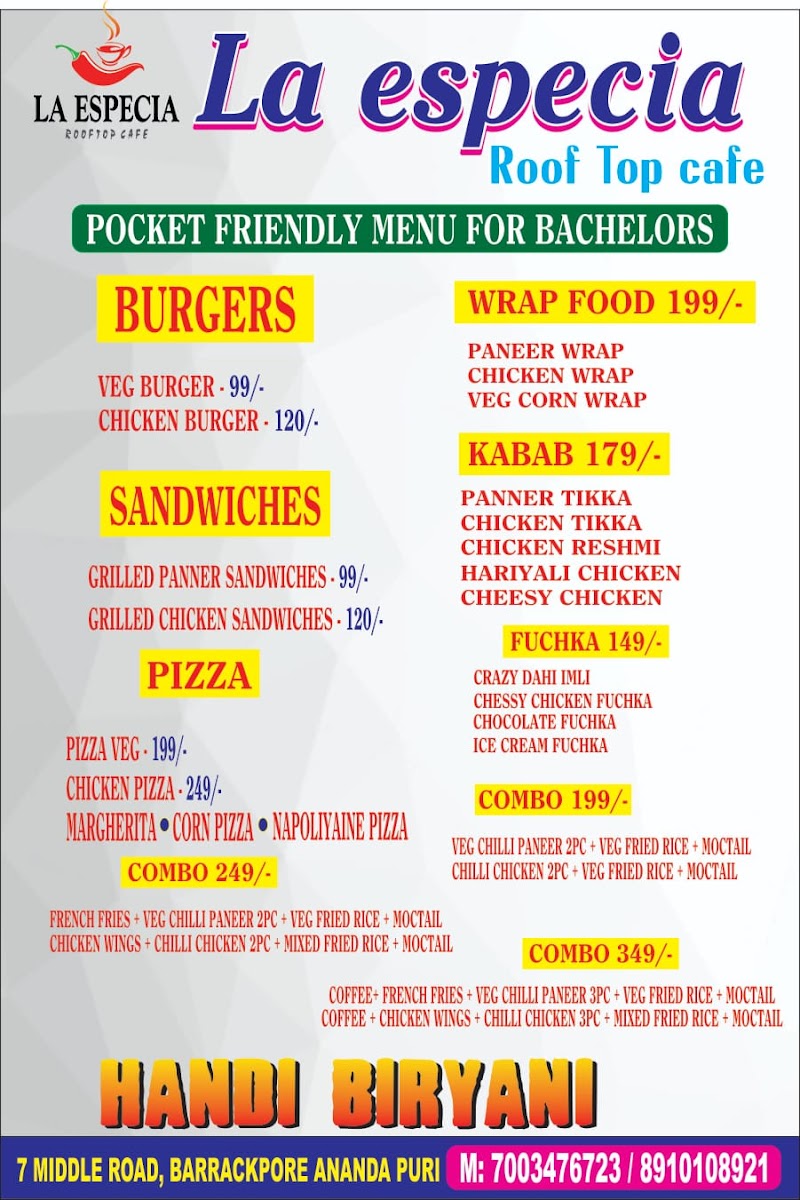 La Especia Roof top cafe & Resto Barrackpore Menu